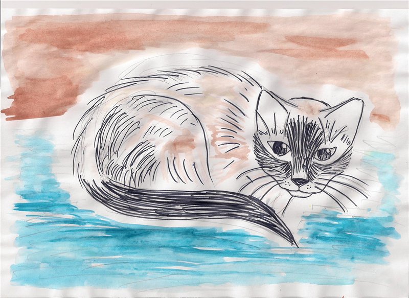 Я часто рисую свою кошку с натуры, когда она спит. Но в тот раз она не спала, а когда я ее рисовала, она не спускала глаз с карандаша и почти не двигалась.