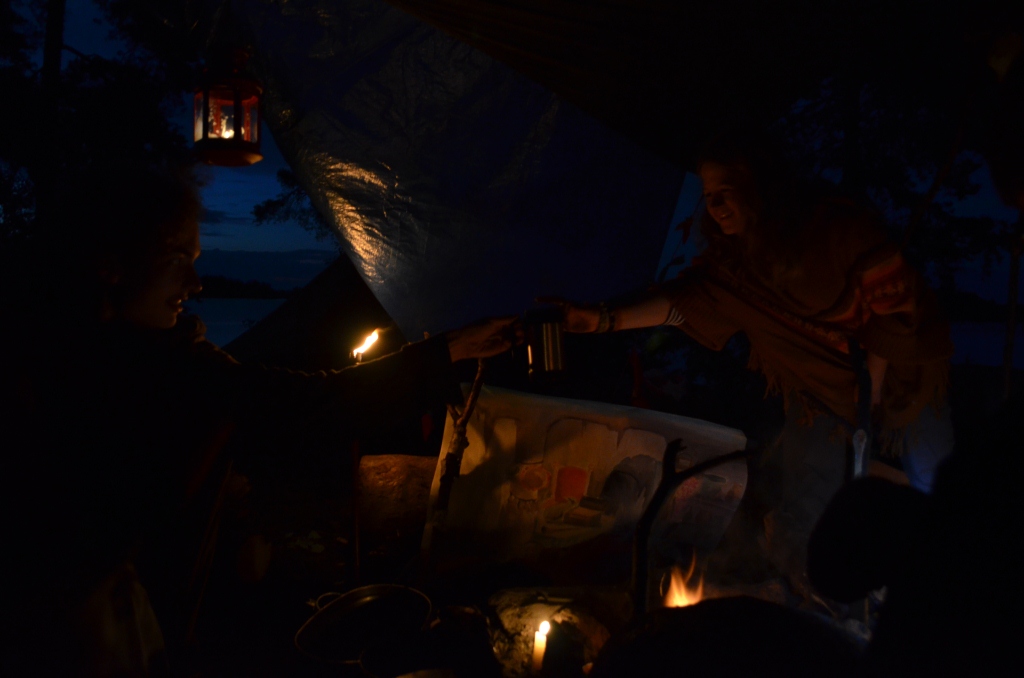 Вечером, точнее часа в 2 ночи (время на острове шло очень странно), мы приготовили чай, ревеневый пудинг и золотые горы груш, сели у костра и долго рассказывали всякие веселые истории друг другу. Тогда я впервые за СанФур подумала, как здорово находиться среди таких друзей. Я подумаю что-то такое еще не раз за эти замечательные дни.