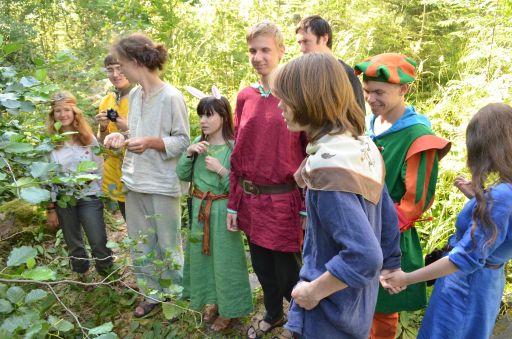 Кстати, я забыла сказать самое главное - Гонфелины, которым в предыдущий вечер мы рассказывали сказки и легенды обещали вознаградить нас щедро, если мы целый день будем говорить по-гонфелински. Это очень здорово отразил Фенвик в своем отчете. Таким образом, на острове Солнечный Мех оказались Фенво, Кузо, Мавто, Сьо, Гонфо, Софо, Вангуво, Тако, Мавкизо и Кело. Ну, и, собственно Эвиво. Такой веселой компанией мы приготовили обед, подкрепились. А тут внезапно обнаружились загадки, и мы отправились разгадывать их и искать камни Гофелинов.