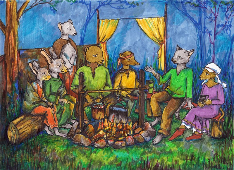 Когда все истории рассказаны, все кружки чая выпиты, но идти спать не хочется (ночь же такая прекрасная, даже дождь не идет!), мы все шли гулять. В компании Беллы, Мартина и его мухомора Розы, Ясеневой Ноги, а также под чуткой охраной госпожи Янтарь мы отправлялись гулять по каменистым берегам реки Мшистой. Путь освещал нам факел. Ночи были ясные и теплые. Мы выходили на живописный берег реки и долго любовались луной. В те дни как раз было полнолуние, и лунная дорожка ровно отражалась в воде, будто дорога, зовущая в путь в неведомые земли. И знаете что! Именно это и запомнилось мне больше всего! То, как мы стояли там все вместе, мы и герои книг, мы и наши друзья, стояли и любовались луной. Именно это и запомнится на долгие сезоны. Именно это мы и будем рассказывать кому-нибудь из наших многочисленных друзей, когда побываем и у них. Например, когда заглянем в келью к брату Ревунчику или на обед к Фолгриму, или в гости к чете ежей Пней, или может когда будет бродить где-то с Брагуном и Саробандо, или когда погостим на Половине у Бью, или когда будем сидеть у костра в лесу и слушать чудесный голос Песенки, или... Да-да, все это мы и расскажем!