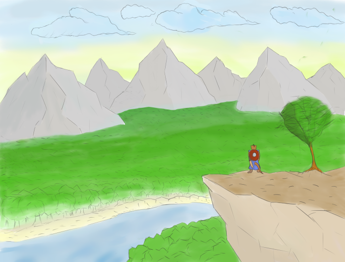 На утесе.