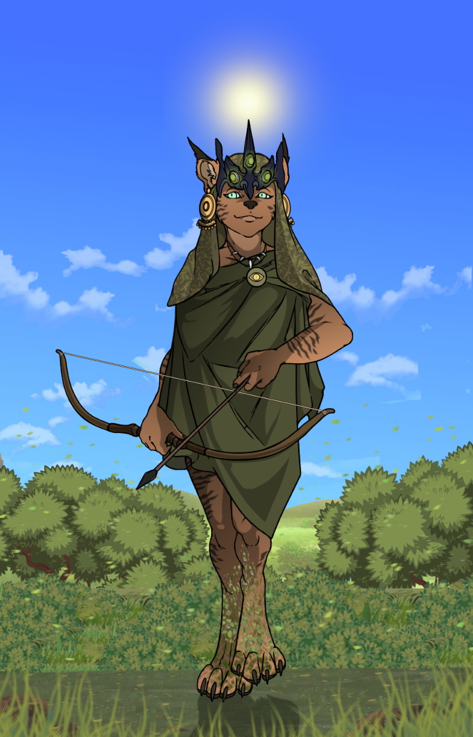 Великолепная Владычица Цармина Зеленоглазая, моё исполнение. Повелительница Края Цветущих мхов без доспеха, на прогулке, босыми лапами ступает по весенней травушке пропахшей утренней росой... Не иначе как вышла угостить старика Аргулора парочкой отравленных стрел!