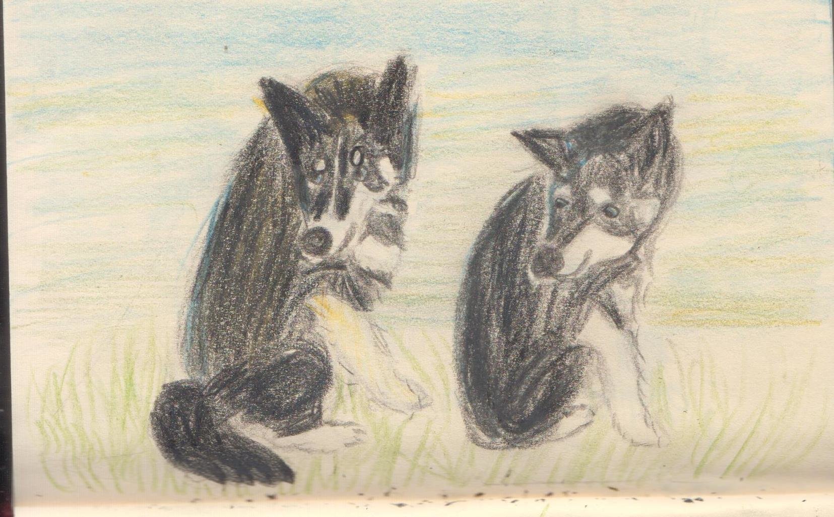 Тоже необычный ракурс, тоже смешные собаки! Кто угадает, где Ермак, а где Удача?) А вообще-то бывают задачки еще сложнее - например, Удача и две ее сестры. Хочу их нарисовать, чтобы потренироваться в детализации)