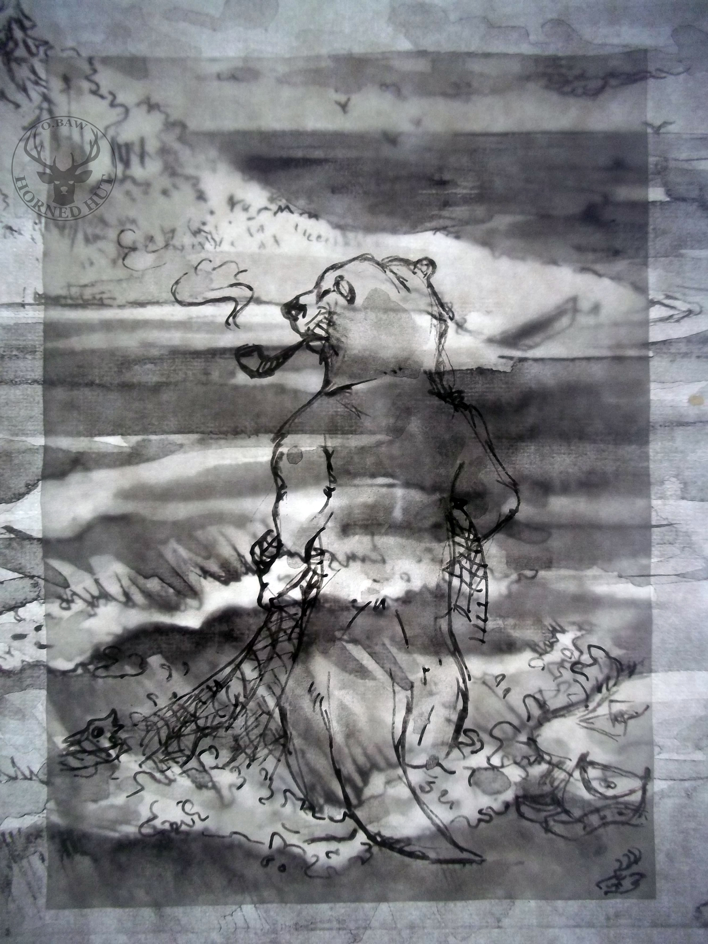 Выдра курит трубку. Ему пришлось долго плыть с сетью в зубах.