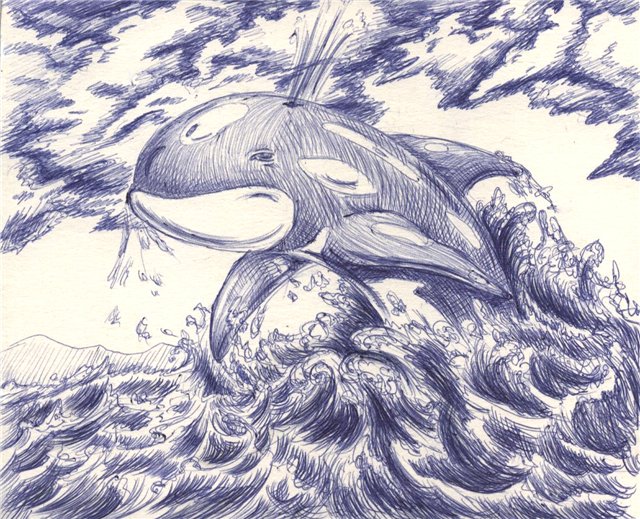 Всегда мечтала нарисовать косатку, гордо выпрыгивающую из воды))(уж не знаю, получилось ли?):
