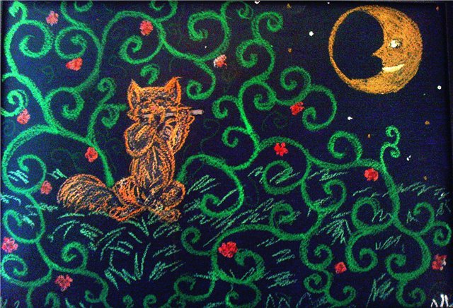 Нуу, сосредоточится на рисовании не выходит, потому - иллюстрация к песне "Кот-флейтист". Пастель, с коей я не слишком-то дружу.