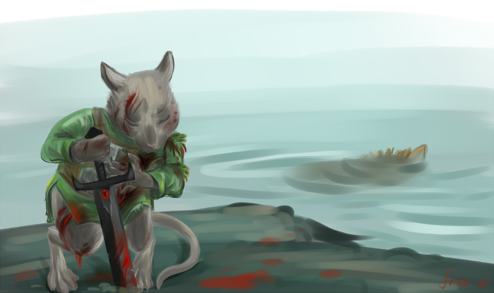 А на отмели Мартин с трудом шагал на сухой берег. Попытавшись в последний раз поднять меч, он смог еще прошептать: