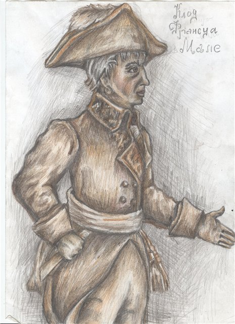 Клод Франсуа Мале - республиканец, четырежды устраивавший заговор против Наполеона, но поскольку все они не достигли успехи, и лишь в последнем Мале захватил Париж на три часа, был расстрелян.