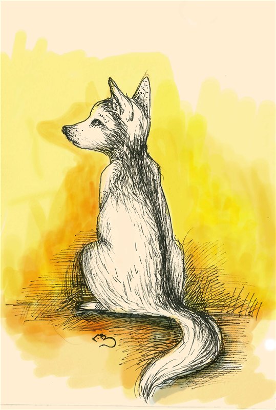 А еще есть маленькая зарисовочка мраморной лисы (они такие прекрасные!) для подруги из универа. Материалы те же.