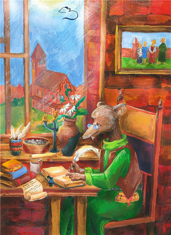"Летописец Ролло". Я рисовала вообще-то береговую землеройку, но потом внезапно выяснилось, что это полевка... А еще потом, что его вид варьируется от книги к книге.