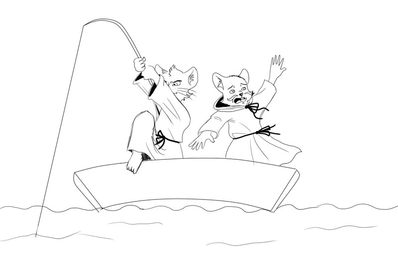 Давненько я не рисовала чего-нибудь, что немного похоже на иллюстрацию. Вот вам набросок рыбалки Матиаса и брата Альфа. Правда, как должна смотреться лапа Матиаса я слабо представляю, поэтому ее еще придется поправлять