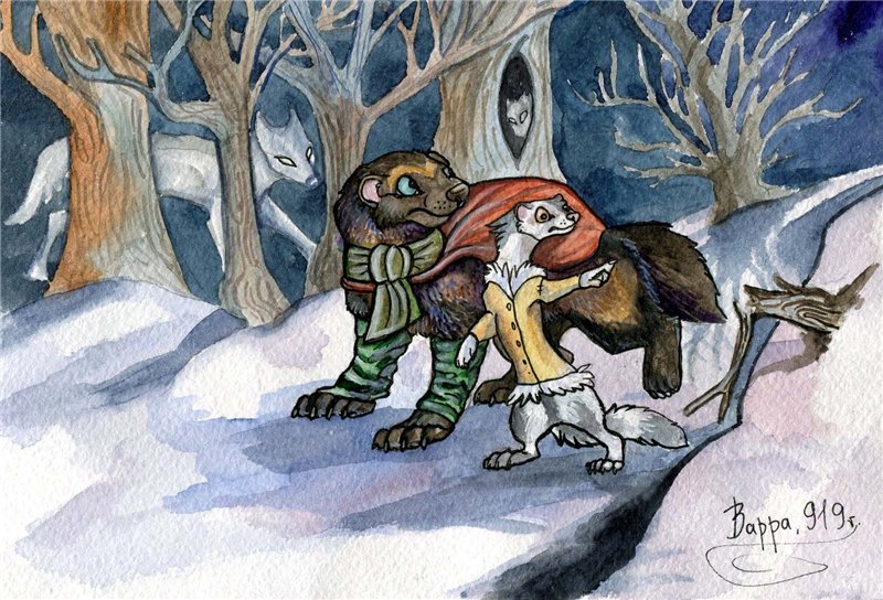 - Да брось, Фир, всё будет в порядке. Сейчас уже не те времена, и нам повезёт, если мы хоть след волка отыщем. Гляди, тут ветка сломана.