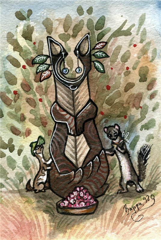Идолы Празвёздной Куницы обычно ставятся на месте гибели выдающихся представителей куньего рода.