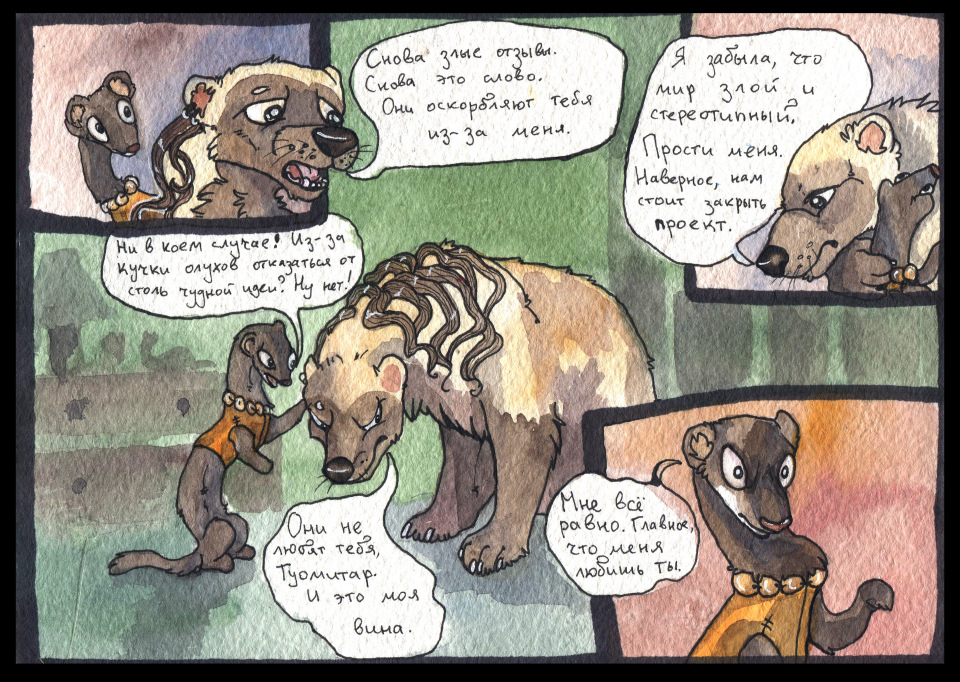 Туомитар - игрушечная норка, созданная мной. У неё большие выпуклые глаза, из-за чего она стала объектом насмешек и издевательств. Ну, а кто оскорбляет Туомитар, тот оскорбляет меня. И я сильно расстраиваюсь, но вот сама Туомитар не унывает.