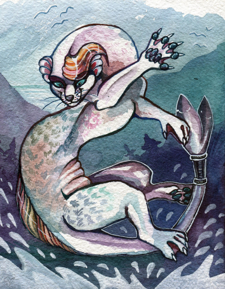 Барикка - божество северных морей. Хитрая и коварная норка, переворачивающая скорлупки ради забавы. Она ворует рыбу у сухопутных зверей, а так же всячески подшучивает над ними и обводит вокруг когтя. Её младшая сестра - Океаническая Выдра - напротив, доброе морское божество, помогающее зверям, но о ней я расскажу в другой раз.