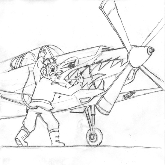 Вчера придумал. На этот сюжет меня нечаянно натолкнул Трумен, у него в теме была картинка с американской палубной авиацией. Поскольку я был тогда в хорошем настроении, вышел такой вот "Придуривающийся летчик". ![]()