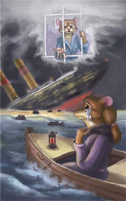 Сюжет называется "Легенда о Титанике" с участием Мартина и Розы. Я как-то увидел рисунок Куберткамии (Это зарубежная художница на Девианте. Сюжет "Мартин и Роза на носу Титаника") и обозлился! Мне захотелось сделать что-то очень грустное и красивое. В результате плучился данный сюжет.