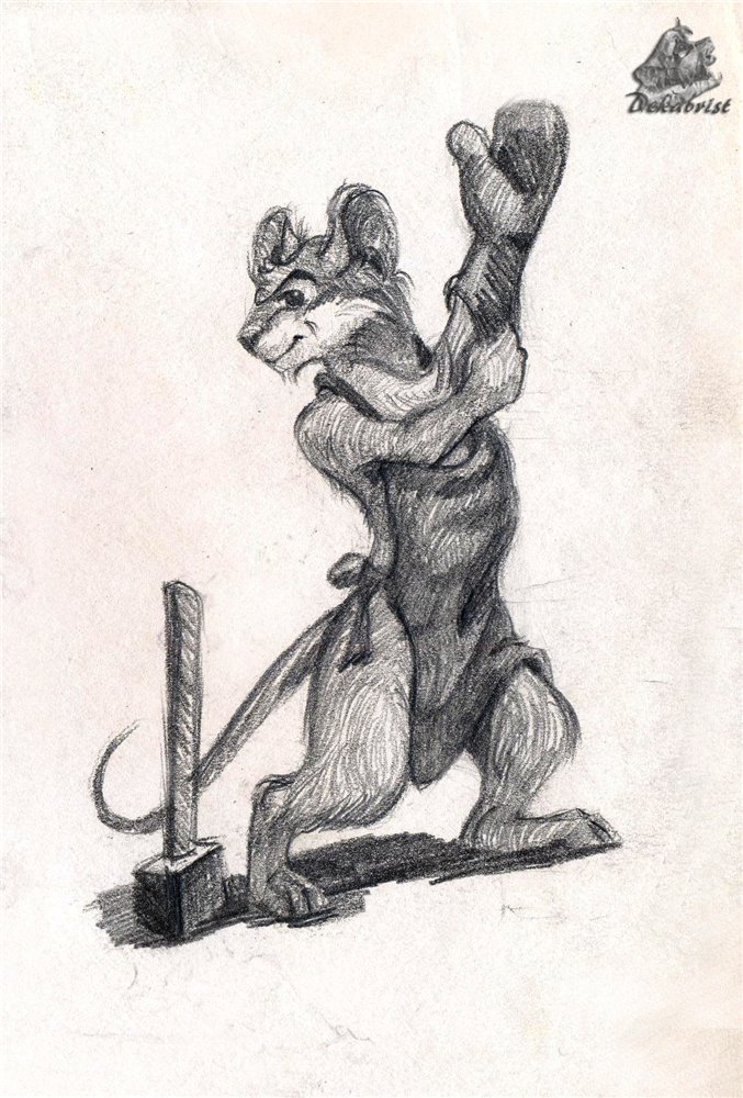 Голова не варит и сессия на носу.Пока вот карандашный рисунок. "Мышь-кузнец"