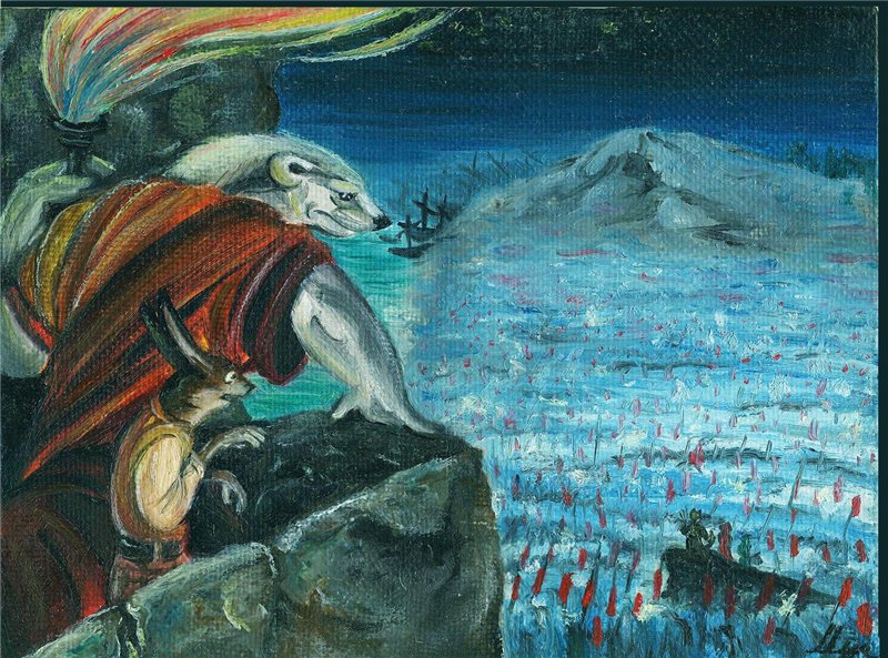 Вот-с, старое масло, прошлым летом рисовала... А нашла только сейчас. Одна из первых работ - по "Последней Битве":