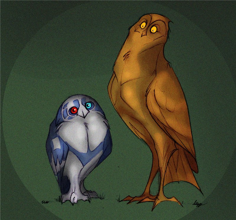 Артур и Триптихов - полярный совэ и красный коршун - отдельно, в цвете: