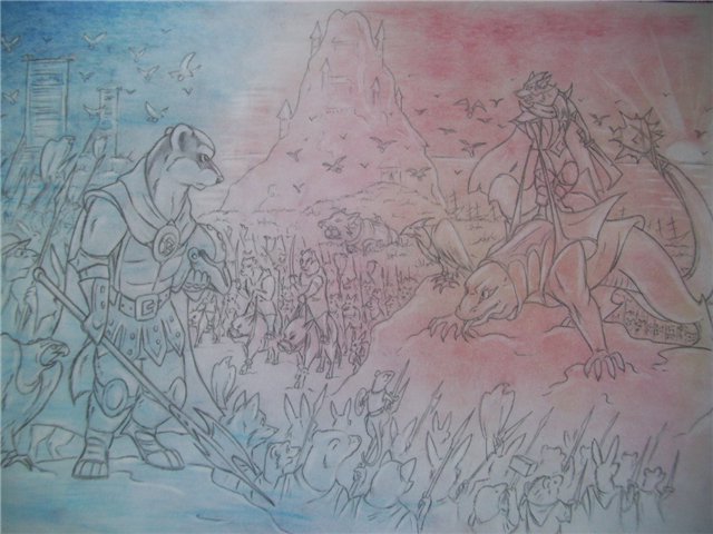 Люблю злодеев. /public/style_emoticons/default/wink.png" alt="wink.png" />Итак, "Последний Бой ЗА СЦМ" на А3. По шагам:На выходных выложу отдельные интересные детали. /public/style_emoticons/default/wink.png" alt="wink.png" />Но почему куница опять злая? Я в печали(