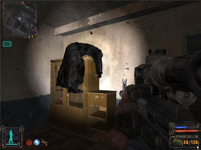 В общем, ключ у бандита забрать надо было, ну я гранатку кинул, захожу в комнату, а он висит... на шкафу концы отдал! Я в смех, достойно "укорешил"! ![]()