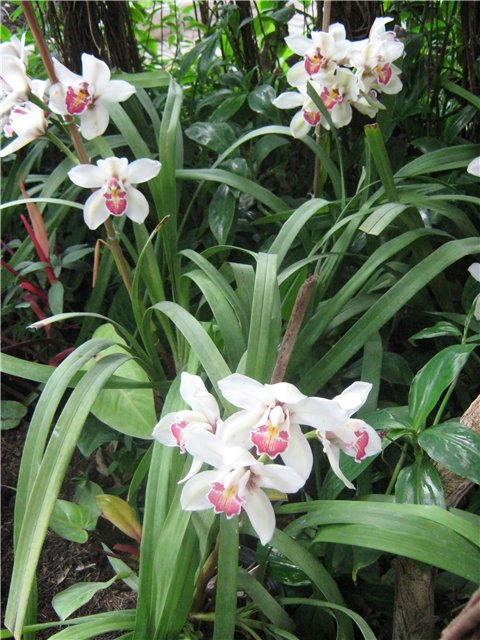 Орхидеи в оранжерее ботанического сада.