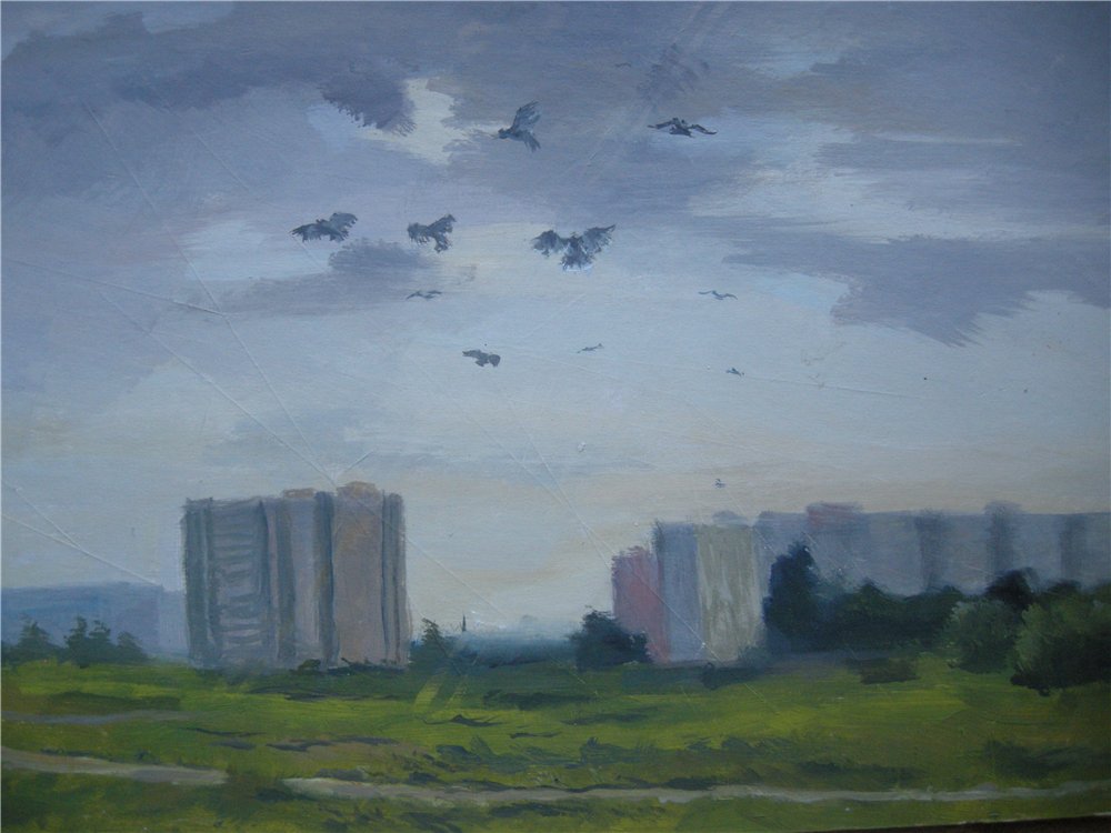 Начну с самых старых за тот год: пейзаж на пустыре. Попытка рисовать птиц. И да, камера подвела, ну НЕТ у меня там такой откровенной зелени!!! :P