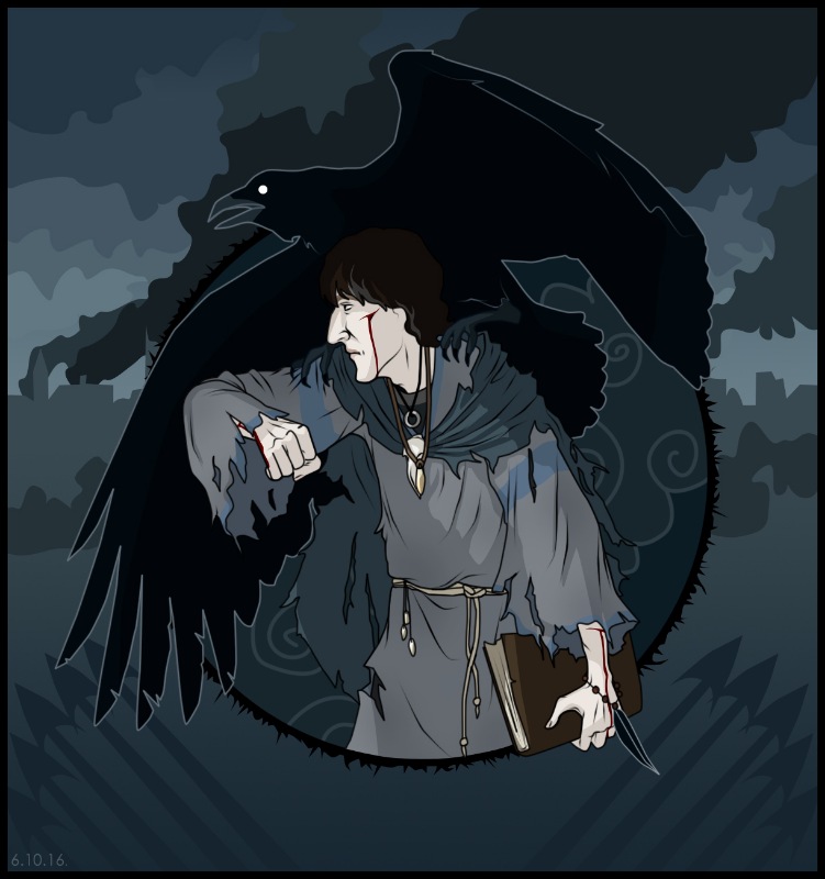 Рисунок называется "Ворон". Эвелина изобразила колдуна. Молодой человек, пепельное сердце, сжигаемое огненной бурей эмоций. Огонь оставит от колдуна лишь горстку пепла. Но пока он дает ему силу, которую он себе и представить не мог. Несчастный!