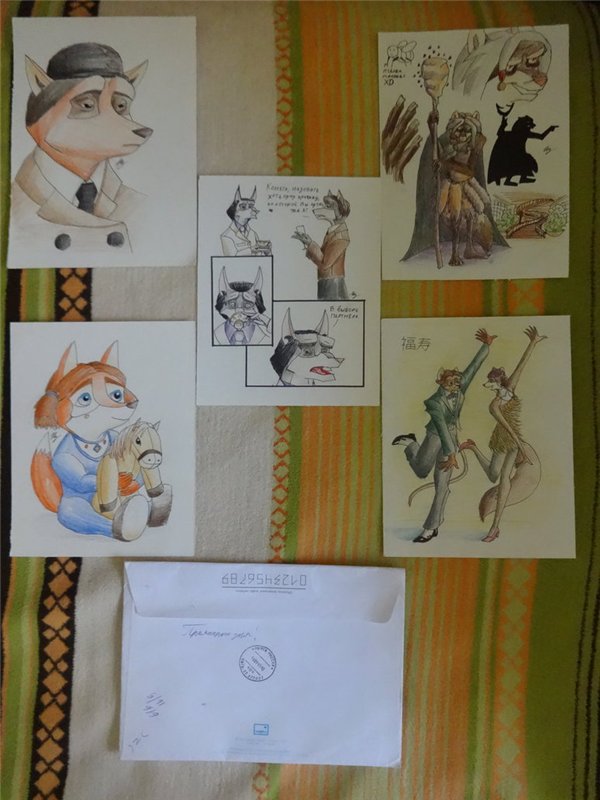 Провели в августе-сентябре грандиозный ACEO-трейд (вообще-то он предусматривает строго определенный формат и особые подписи, но мы не искушенный народ, нам все в новинку, да если честно, вообще пофиг). Посему вспомнили дружно, что есть и традиционный арт, и не все решает фотошоп, и что рисунок приятно в руках подержать, короче, нещадно эксплуатировали Почту России.![]()