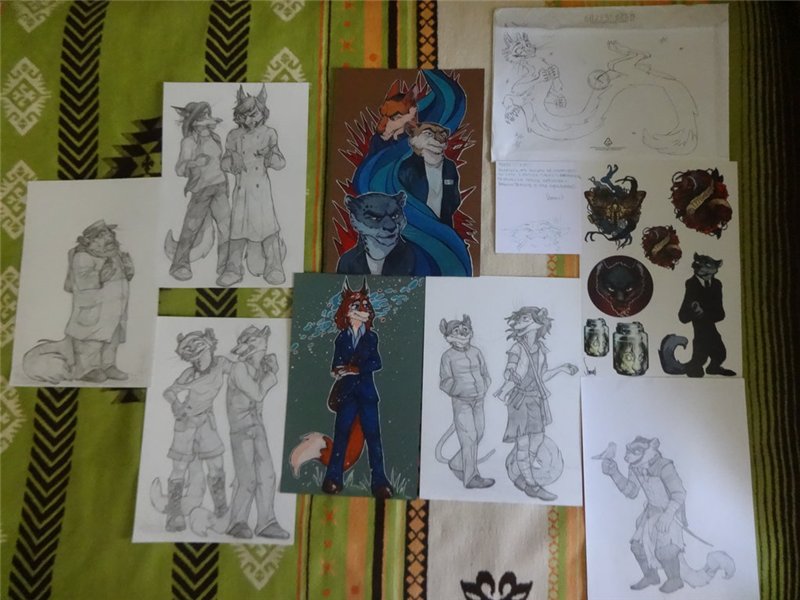 Провели в августе-сентябре грандиозный ACEO-трейд (вообще-то он предусматривает строго определенный формат и особые подписи, но мы не искушенный народ, нам все в новинку, да если честно, вообще пофиг). Посему вспомнили дружно, что есть и традиционный арт, и не все решает фотошоп, и что рисунок приятно в руках подержать, короче, нещадно эксплуатировали Почту России.![]()