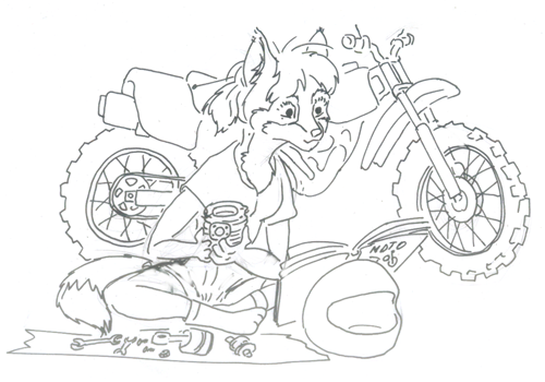 Попросили нарисовать лису на мотоцикле типа эндуро, как лого на майку. Подарок своей девушке которая реально рыжеволосая и ездит на эндуро.
