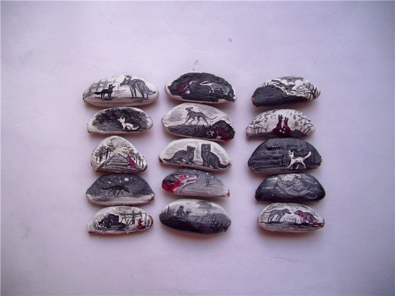 Иллюстрации к "Лунному Зверю" Г. Килворта - на грунтованных семечках хурмы.))