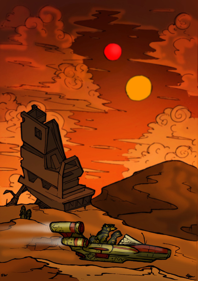 Орден, тускены, сама пустыня… Опасности окружали Рей, а у неё из оружия был только бластер. Даже меча (благодаря Кайло Рену!) не было. И всё же, вместе с тем она ощущала себя странно спокойной. Словно жизнь вернулась в привычную колею. Пустыня, спидер, необходимость думать, хватит ли воды до конца пути… Рей знала, что делать, может, даже лучше, чем Кайло Рен. Это радовало. Это успокаивало. Позволяло не глядеть в будущее далеко, где была необходимость решить кучу проблем. Затишье перед песчаной бурей…