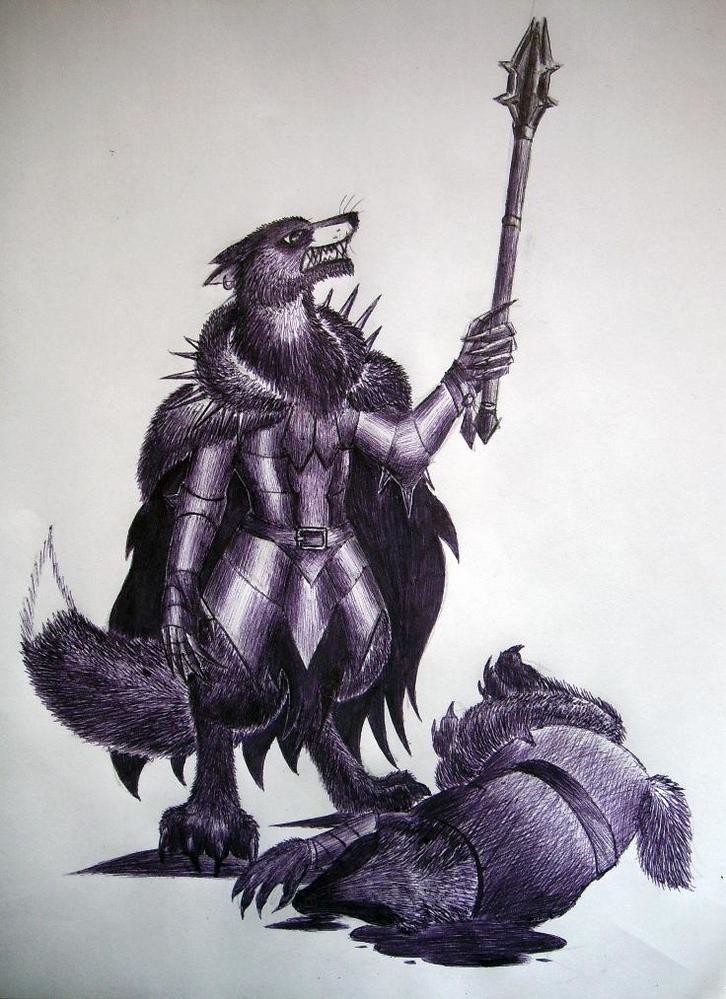 Нагру был весьма крупный лис. От кончика носа до кончика хвоста его гибкое и сильное тело покрывали голубовато-серые пятна, а его жестокие глаза напоминали кроваво-красный гранит, в котором остро сверкали блестки зрачков. Одеждой ему служила шкура волка, на голове красовалась морда с пустыми глазницами, надетая как капюшон. Лапы Нагру вдевал в лапы шкуры, как в рукава рубашки. Вместо волчьих когтей были вставлены железные когти, и поэтому лапы Нагру становились грозным оружием.
